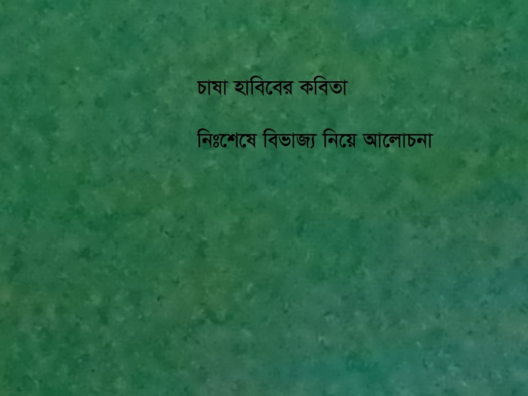 চাষা হাবিবের কবিতা ‘নিঃশেষে বিভাজ্য’ একটি বুদ্ধিবৃত্তিক ক্লান্তি ও আত্মিক বিভ্রান্তির কবিতা, যেখানে কবি বারবার জ্ঞানার্জনের চেষ্টায় ডুবে গিয়ে উঠে দাঁড়ান— আবার পড়ে যান, কিন্তু কোথাও যেন কোনো পূর্ণতা পান না। কবিতাটি একটি চক্রের মত, যেখানে জ্ঞান, ধর্ম, ইতিহাস, দর্শন সব কিছুতেই কবি প্রবেশ করেন, কিন্তু সব শেষে তিনি ফিরে আসেন ‘ভাগশেষ’-এর কাছে— যা কোনো সমাপ্তি বা সিদ্ধান্ত নয়, বরং এক ধরনের অন্তহীন ক্লান্তি ও শূন্যতা।